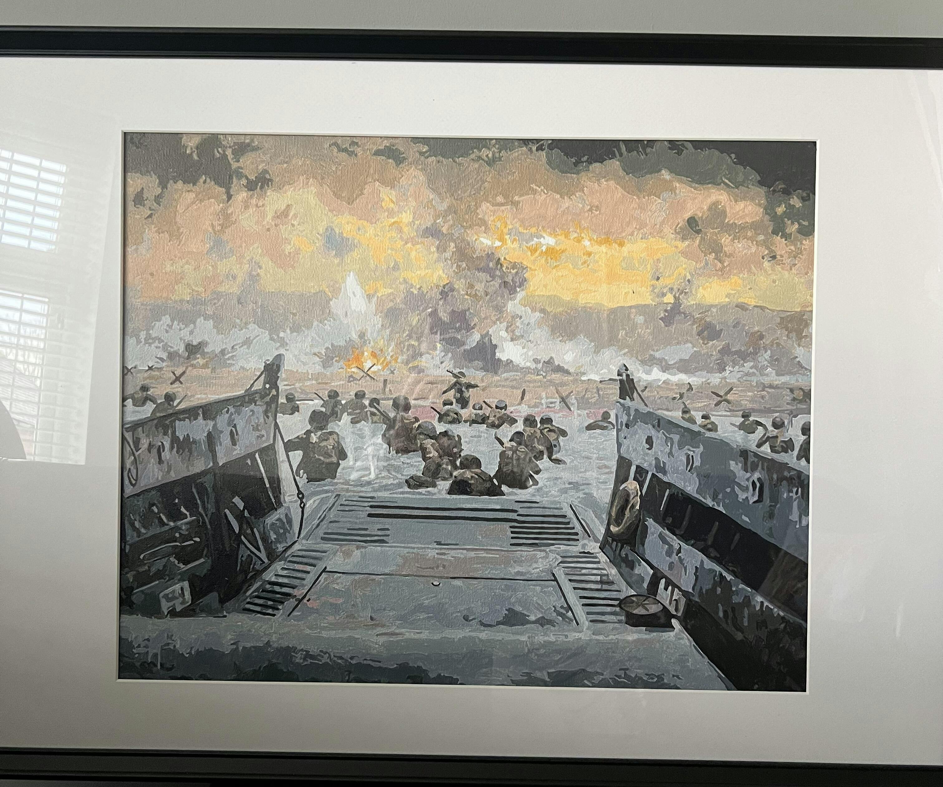 D-DAY LANDING by Abraham Hunter -Experience the powerful moment of soldiers landing on D-Day with this detailed artwork by Abraham Hunter. It shows the bravery and struggle of that historic day during World War II. Perfect for history lovers, this piece lets you remember the courage and sacrifice of those who fought for freedom.