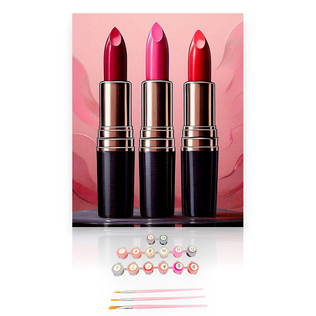 Sealed with a Kiss-Pucker up! This beauty-inspired paint-by-numbers kit features three glamorous lipsticks in bold shades of red and pink. Whether you’re a makeup lover or just want a chic piece of art for your space, this kit is a perfect choice.